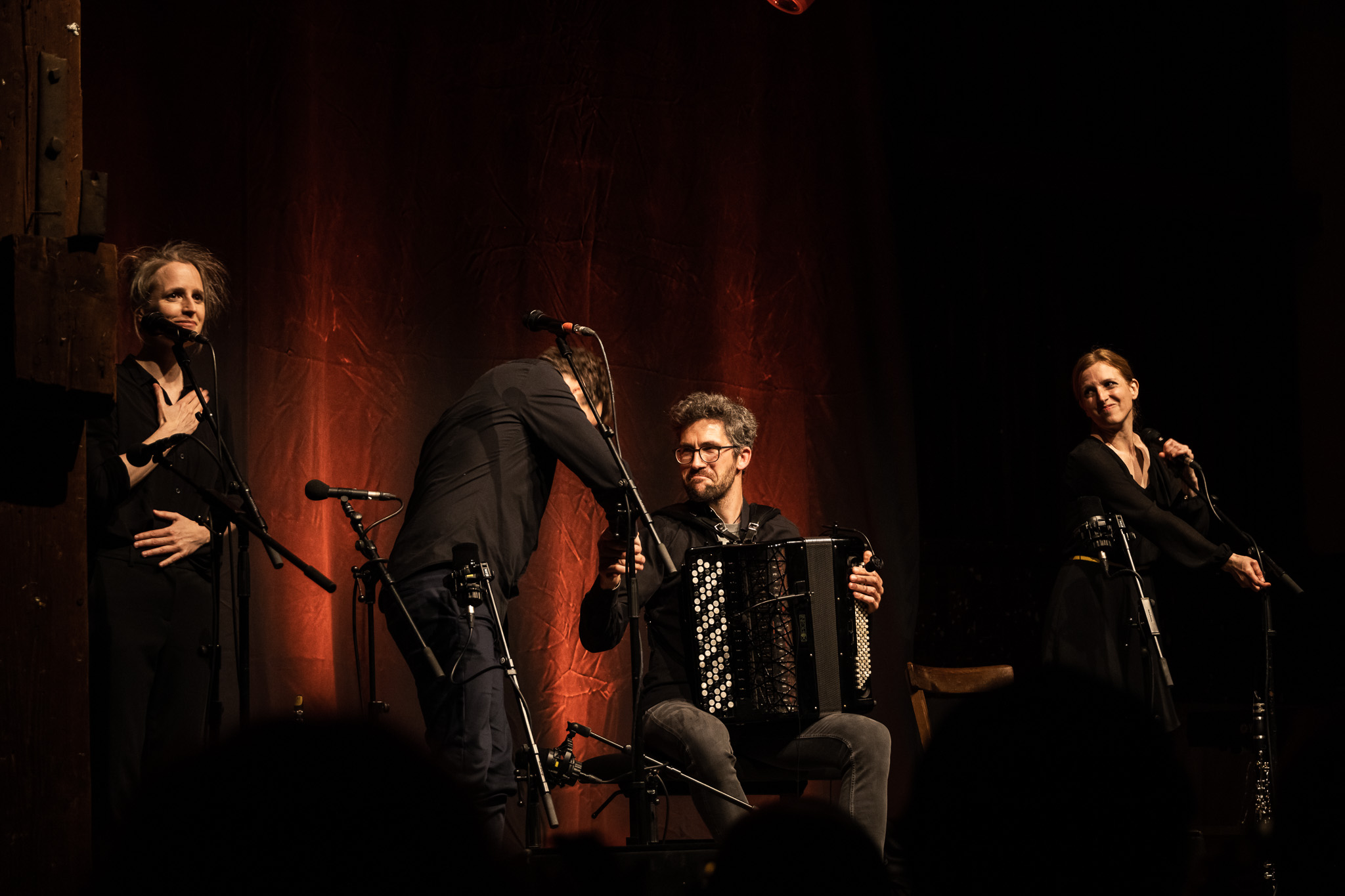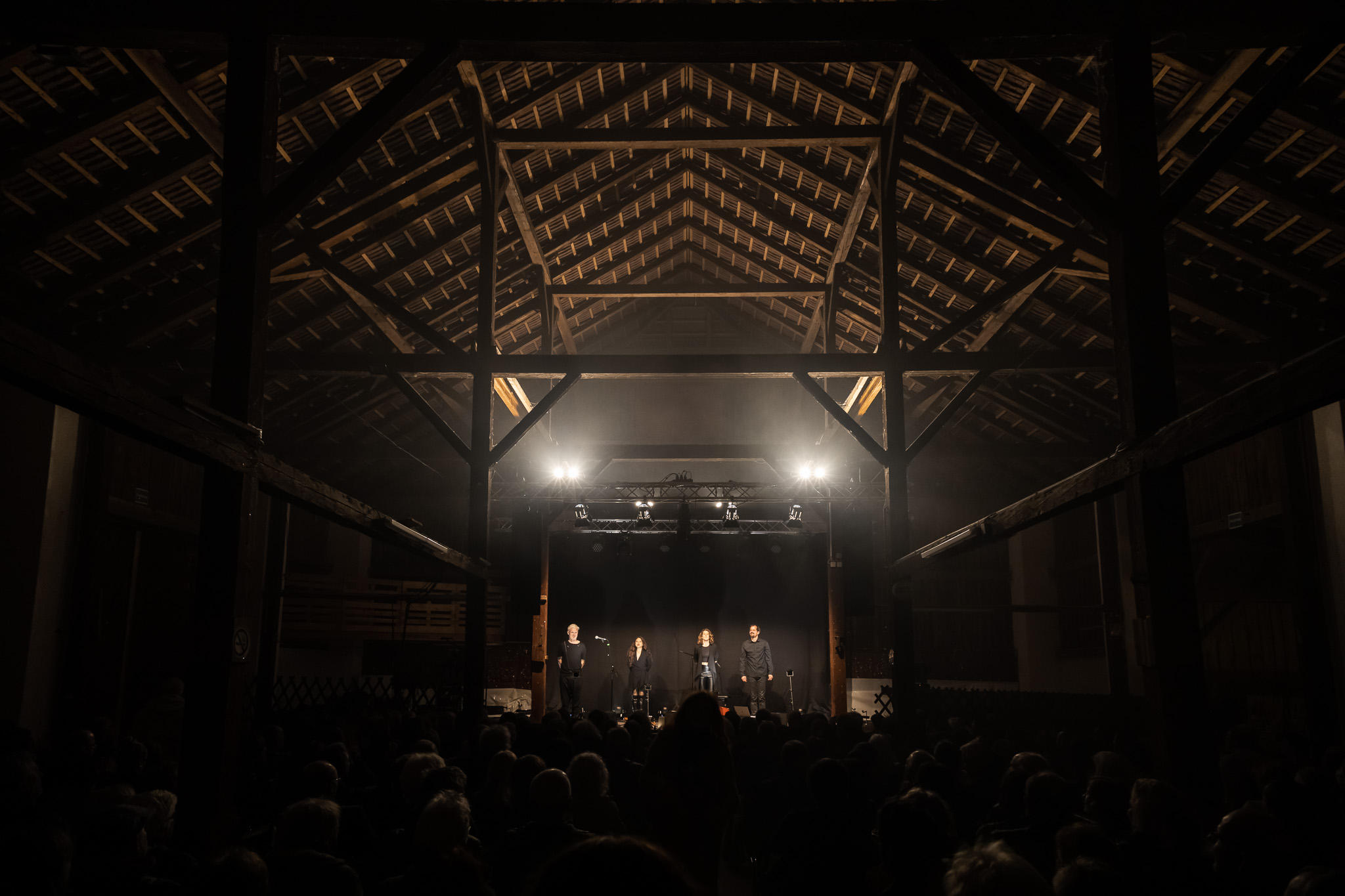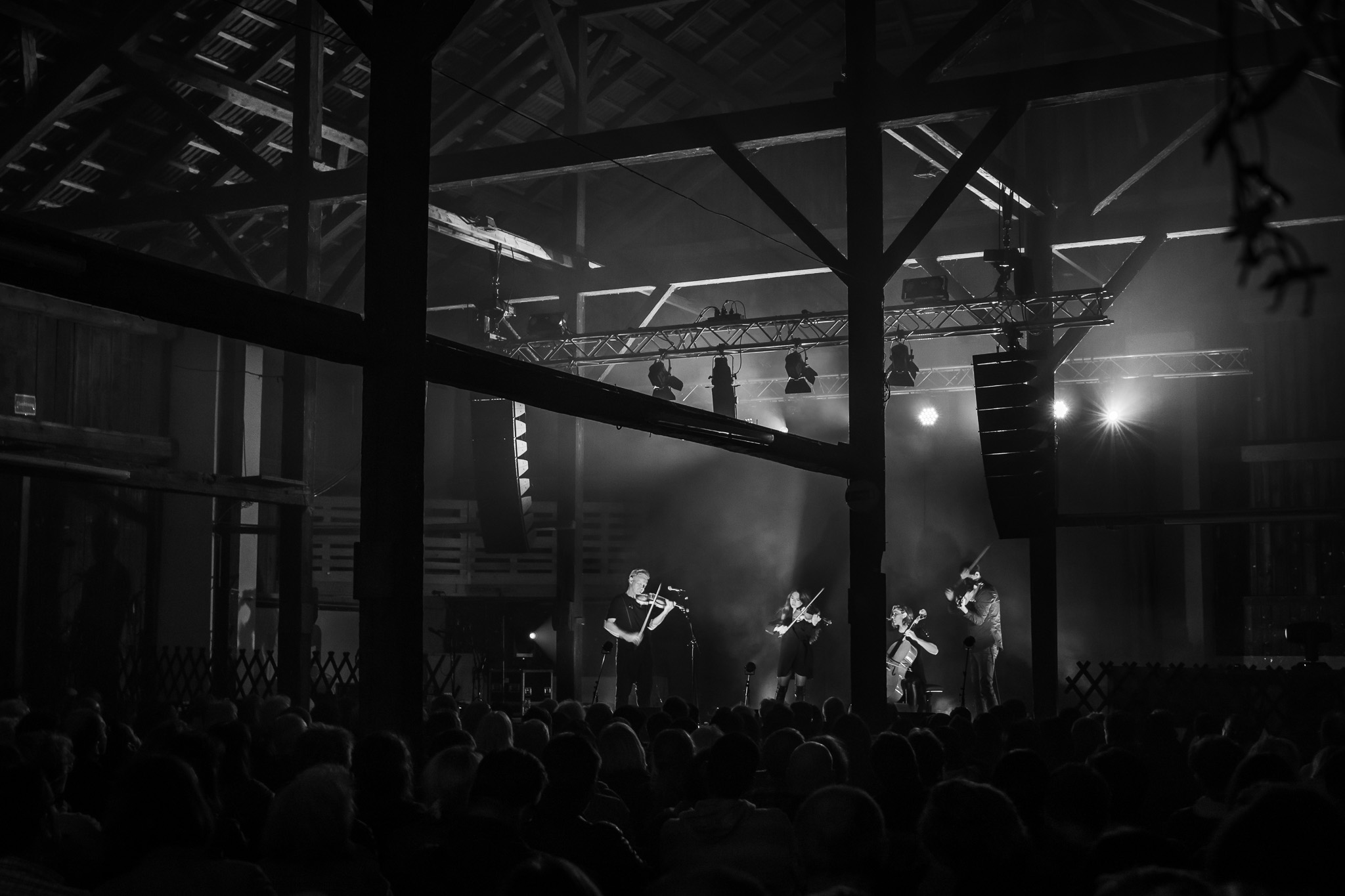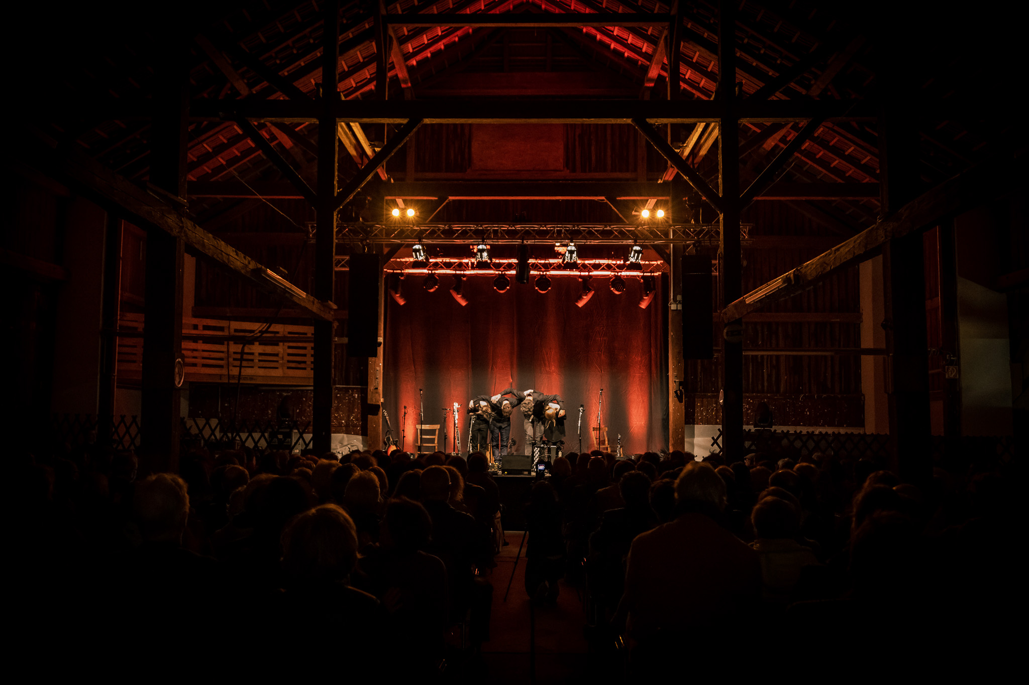 Zunächst The Henry Girls, drei temperamentvolle irische Schwestern, die mit ihren Gesangsharmonien gleich zu Beginn für Gänsehaut-Momente sorgten. Bei jedem gespielten und gesungenen Ton spürte man die durch ihre gemeinsamen Lebenslinien enge Verbundenheit. Großer Jubel nach ihrem Konzert ließ bereits die Begeisterungsstürme erahnen, die unser fantastisches Publikum noch von sich geben würde. Danach hörten wir eine exzessive Interpretation der Violinsonate in g-moll von Johann Sebastian Bach. Das radio.string.quartet spielte ihre ganz persönliche Version dieses barocken Meisterwerkes. Das Empfinden während dieses Konzertes einzuordnen, fällt wirklich schwer. Es bleibt unfassbar, unbegreiflich, ja göttlich. Gleichsam ein Widerhall aus dem unendlichen Raum. Minutenlange, stehende Ovationen waren die logische Konsequenz. Klakradl hatte die Aufgabe nach diesem einmaligen Konzert anzuschließen. Mit feiner musikalischer Klinge und höchst umsichtig holten sie uns zurück aus der Fiktion. Die vier Kärtner*innen webten sich meisterhaft und witzig um Kärntner Dialektausdrücke und sorgten so dafür, dass wir den ZOA-Stadel bestens gelaunt und glücklich verließen.
