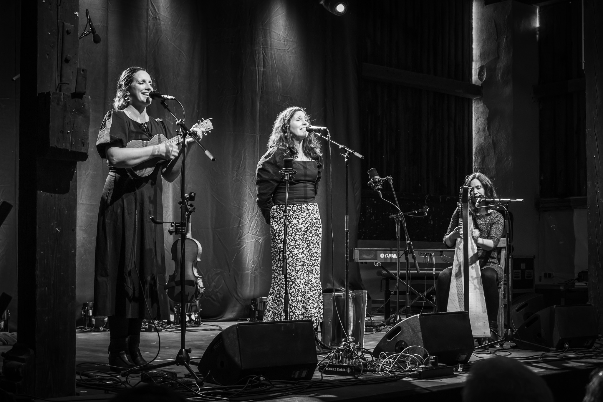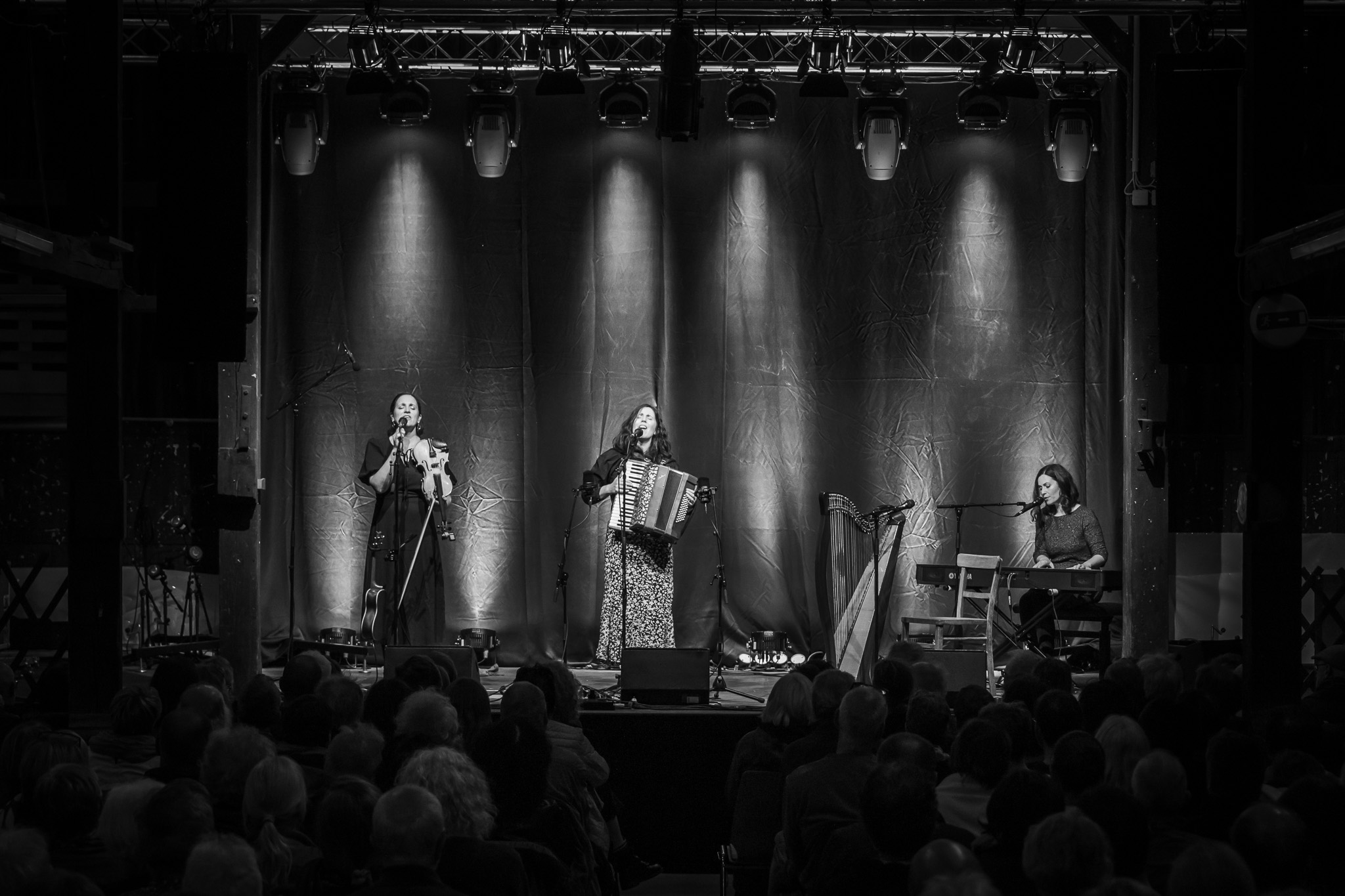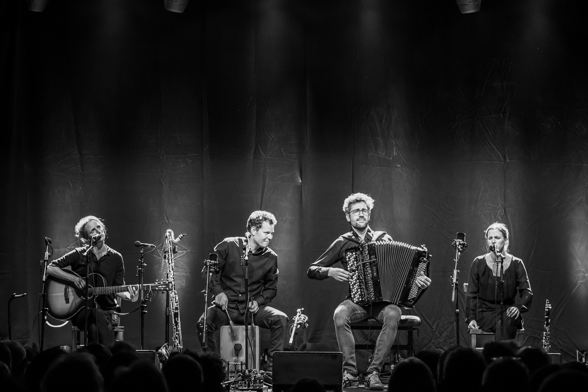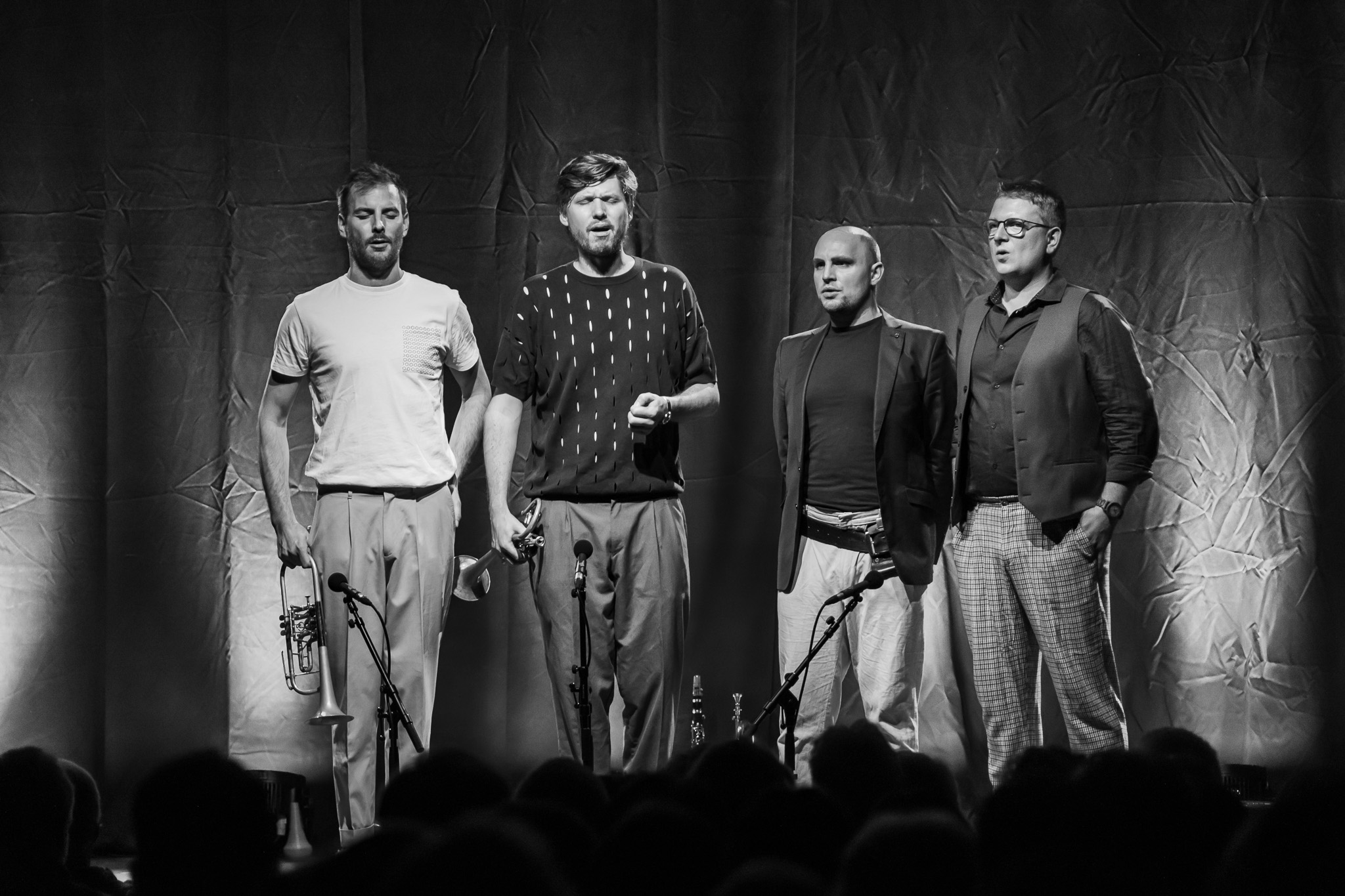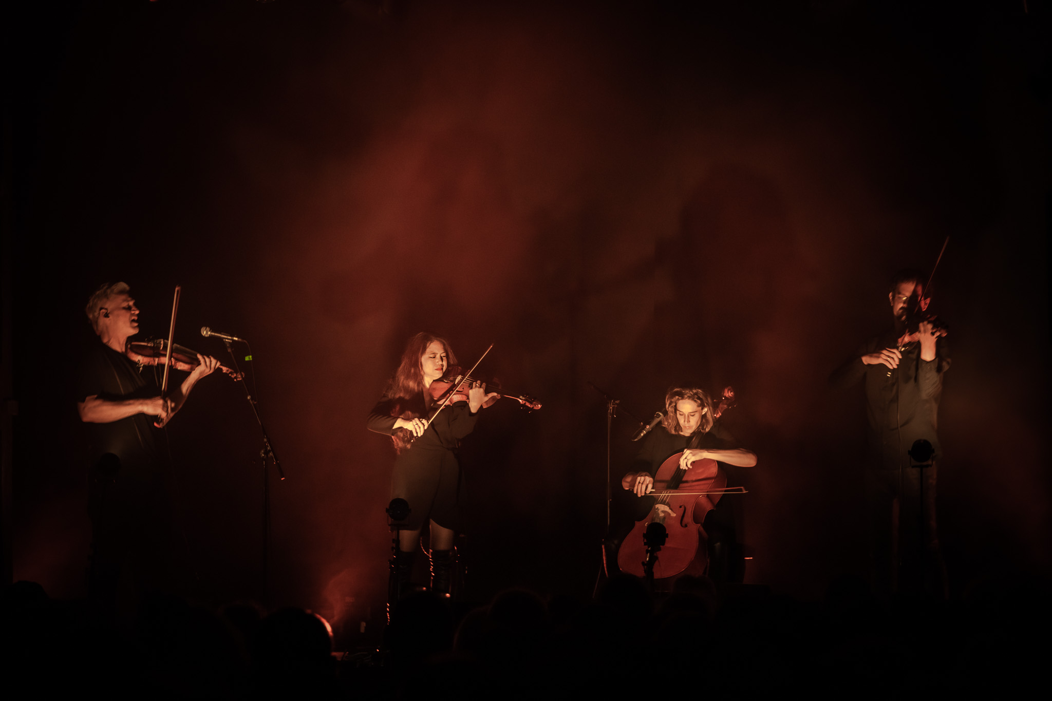 Zunächst The Henry Girls, drei temperamentvolle irische Schwestern, die mit ihren Gesangsharmonien gleich zu Beginn für Gänsehaut-Momente sorgten. Bei jedem gespielten und gesungenen Ton spürte man die durch ihre gemeinsamen Lebenslinien enge Verbundenheit. Großer Jubel nach ihrem Konzert ließ bereits die Begeisterungsstürme erahnen, die unser fantastisches Publikum noch von sich geben würde. Danach hörten wir eine exzessive Interpretation der Violinsonate in g-moll von Johann Sebastian Bach. Das radio.string.quartet spielte ihre ganz persönliche Version dieses barocken Meisterwerkes. Das Empfinden während dieses Konzertes einzuordnen, fällt wirklich schwer. Es bleibt unfassbar, unbegreiflich, ja göttlich. Gleichsam ein Widerhall aus dem unendlichen Raum. Minutenlange, stehende Ovationen waren die logische Konsequenz. Klakradl hatte die Aufgabe nach diesem einmaligen Konzert anzuschließen. Mit feiner musikalischer Klinge und höchst umsichtig holten sie uns zurück aus der Fiktion. Die vier Kärtner*innen webten sich meisterhaft und witzig um Kärntner Dialektausdrücke und sorgten so dafür, dass wir den ZOA-Stadel bestens gelaunt und glücklich verließen.