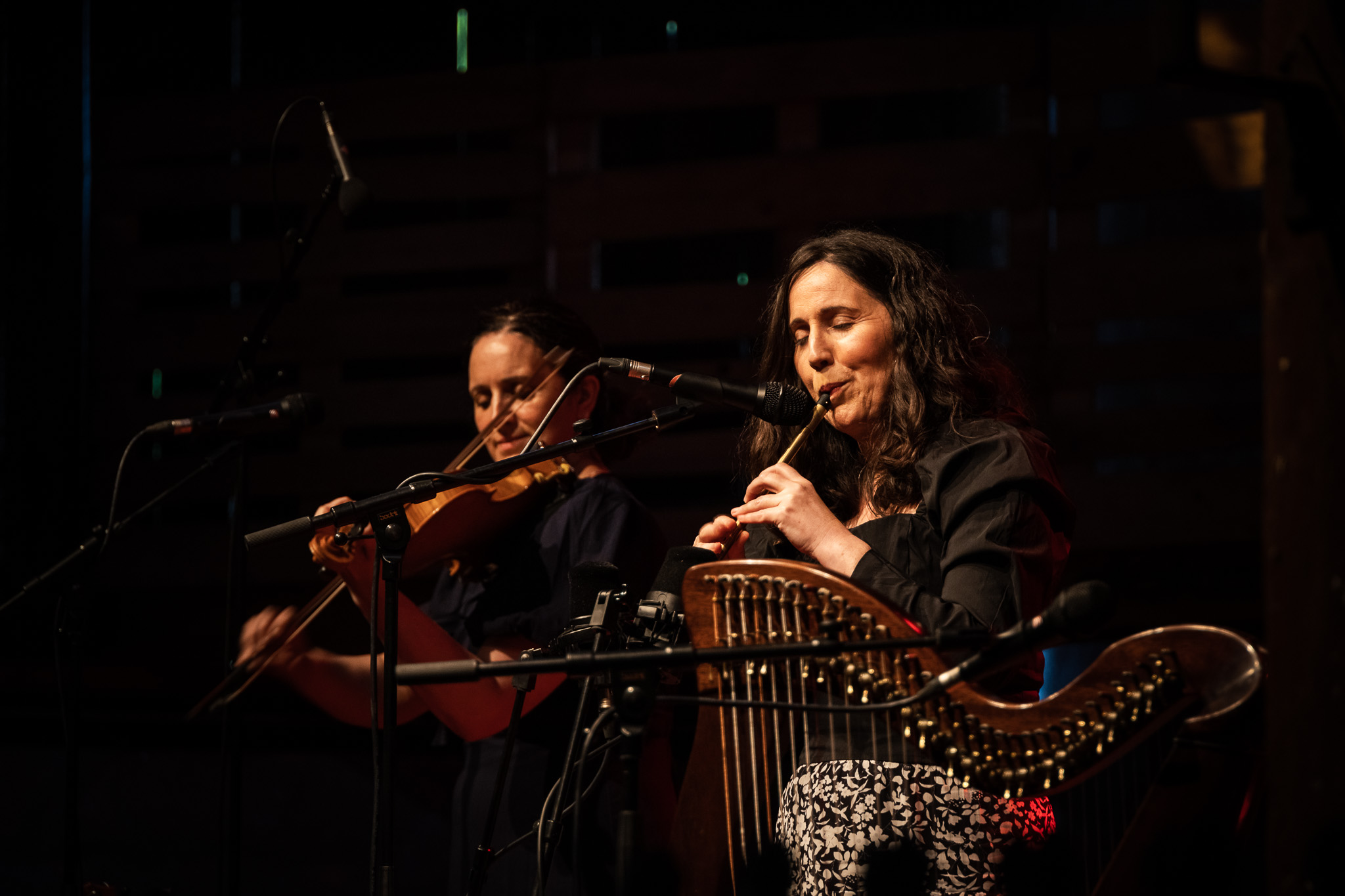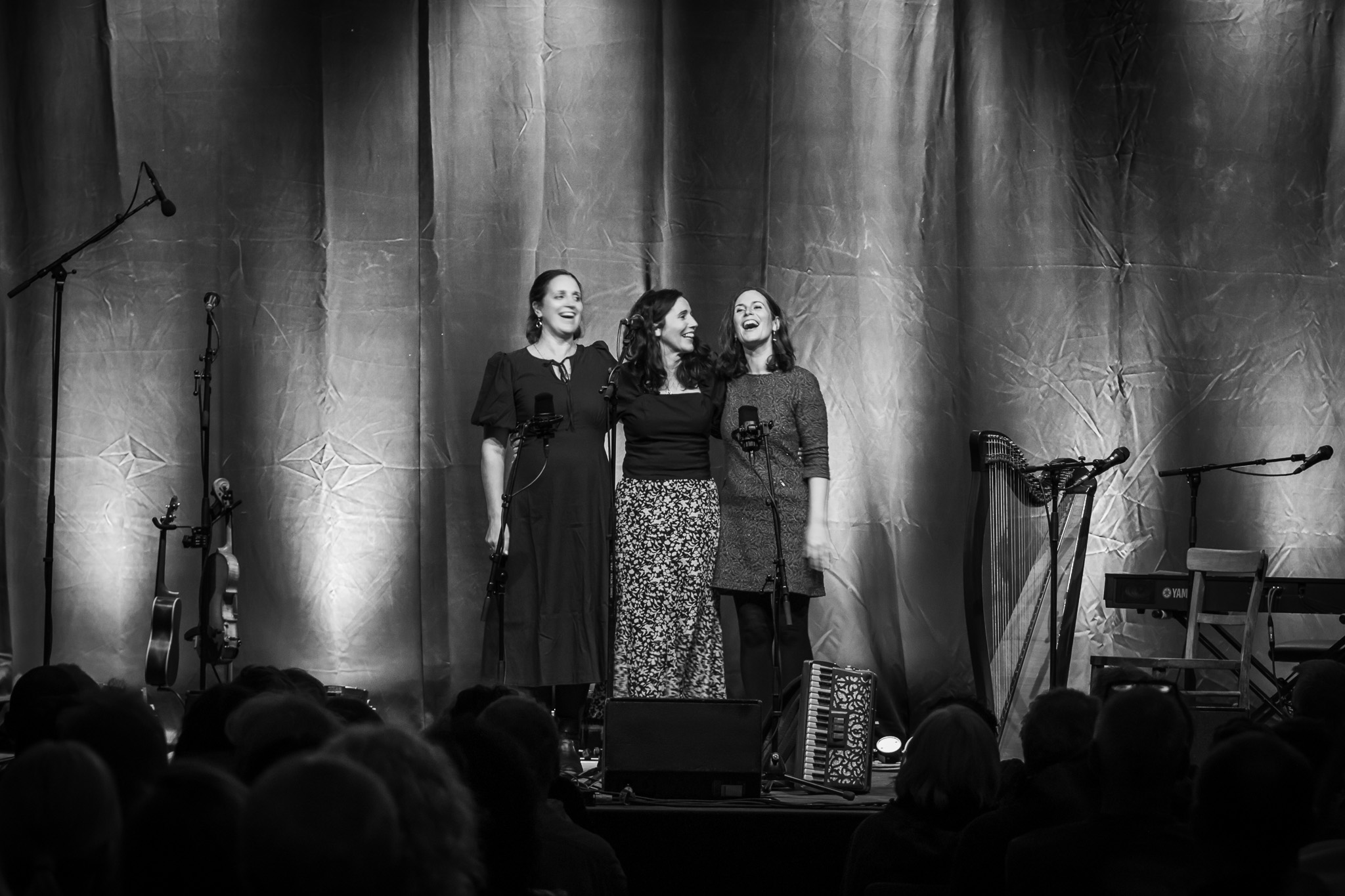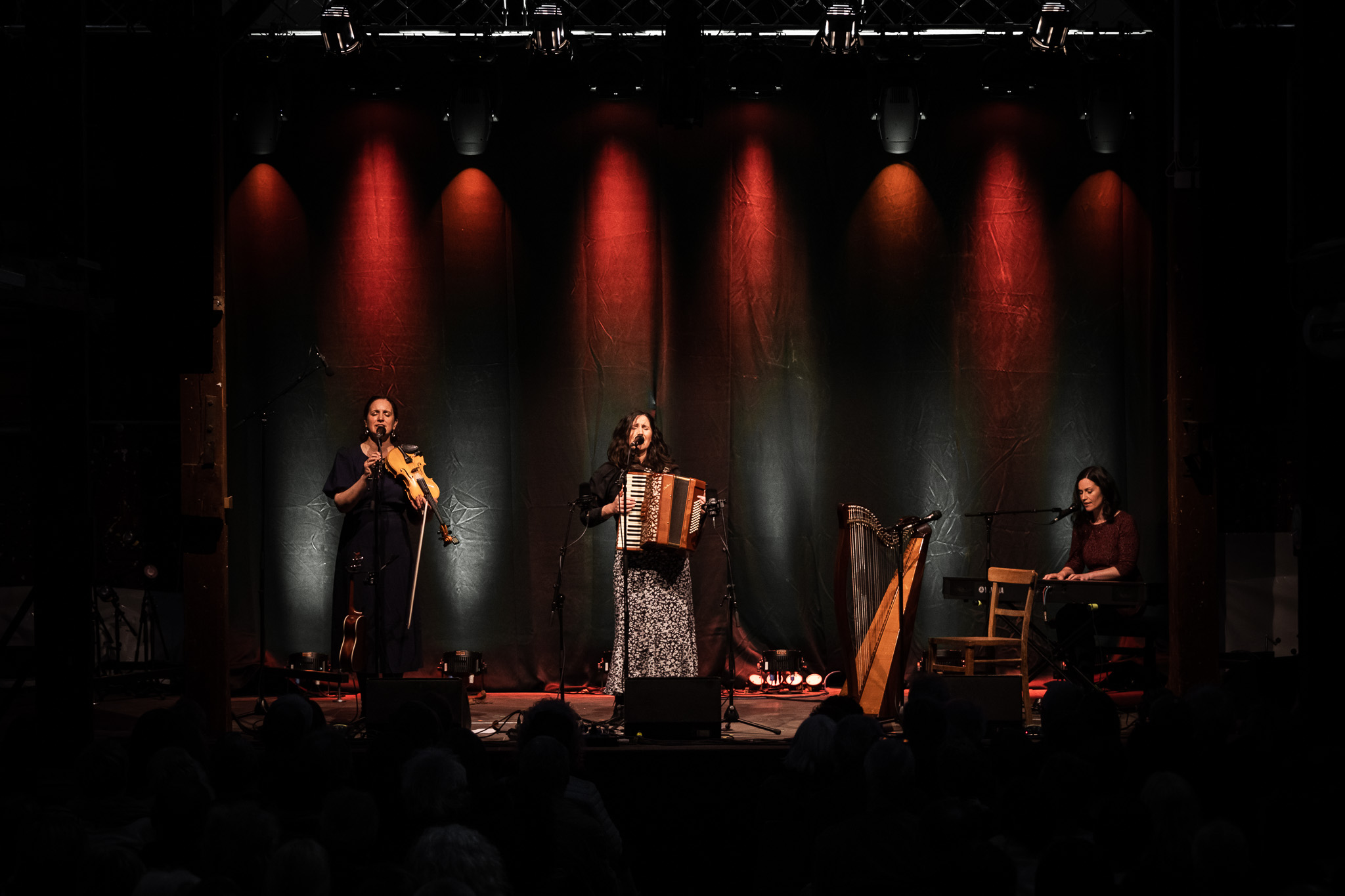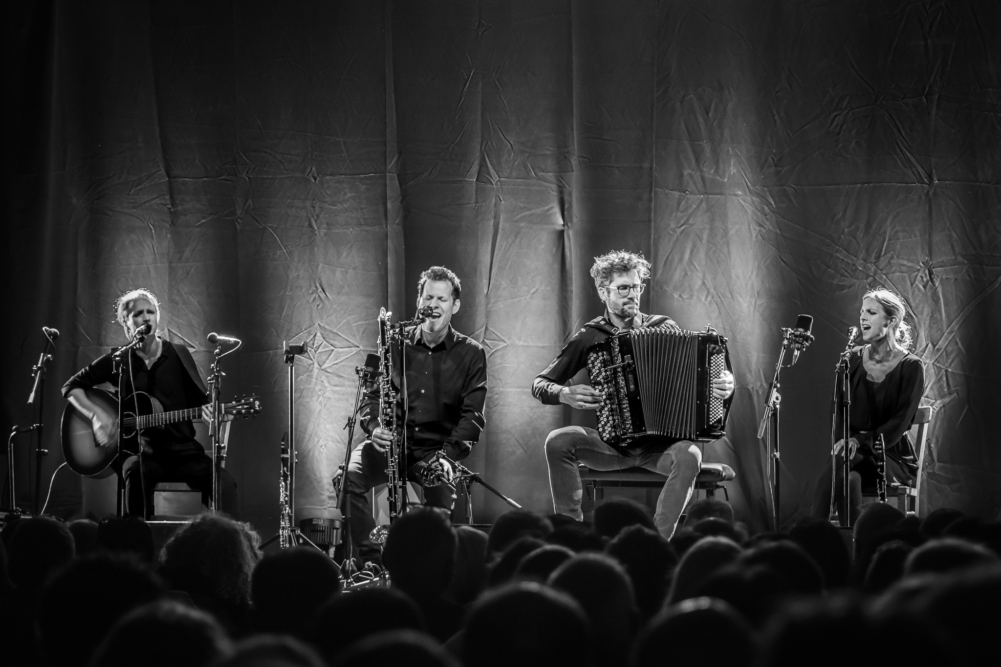 Zunächst The Henry Girls, drei temperamentvolle irische Schwestern, die mit ihren Gesangsharmonien gleich zu Beginn für Gänsehaut-Momente sorgten. Bei jedem gespielten und gesungenen Ton spürte man die durch ihre gemeinsamen Lebenslinien enge Verbundenheit. Großer Jubel nach ihrem Konzert ließ bereits die Begeisterungsstürme erahnen, die unser fantastisches Publikum noch von sich geben würde. Danach hörten wir eine exzessive Interpretation der Violinsonate in g-moll von Johann Sebastian Bach. Das radio.string.quartet spielte ihre ganz persönliche Version dieses barocken Meisterwerkes. Das Empfinden während dieses Konzertes einzuordnen, fällt wirklich schwer. Es bleibt unfassbar, unbegreiflich, ja göttlich. Gleichsam ein Widerhall aus dem unendlichen Raum. Minutenlange, stehende Ovationen waren die logische Konsequenz. Klakradl hatte die Aufgabe nach diesem einmaligen Konzert anzuschließen. Mit feiner musikalischer Klinge und höchst umsichtig holten sie uns zurück aus der Fiktion. Die vier Kärtner*innen webten sich meisterhaft und witzig um Kärntner Dialektausdrücke und sorgten so dafür, dass wir den ZOA-Stadel bestens gelaunt und glücklich verließen.