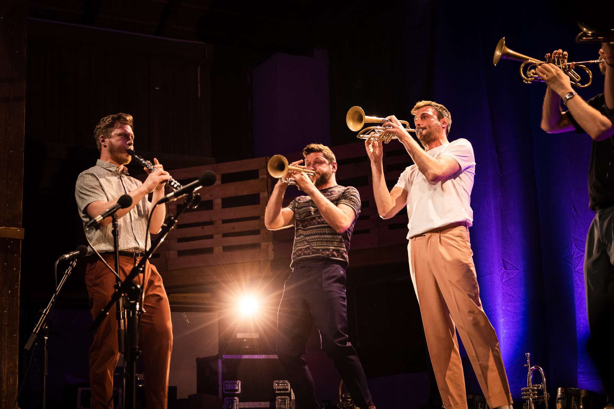 Der zweite Abend startete mit fantastischem Indie Swing von Marina & The Kats. So am Punkt groovten The Kats um Marina’s außergewöhnliche Stimme. Bald schon hielt es die Zuhörer*innen nicht mehr auf ihren Sesseln und der wenige Platz im randvoll gefüllten Stadel wurde zur Tanzfläche. Danach betraten The Preda’s die ZOA-Bühne. Marius, der mit seinen beiden Söhnen Thomas und Eduard extra 12 Stunden mit dem Auto aus Den Haag angereist war, hielt in Anbetracht des tobenden Applauses nach der Eröffnungsnummer fest: „Actually this is better than New York“. Im weiteren Verlauf begaben sich diese drei Ausnahmemusiker mit uns auf eine fantastische Reise durch ihre Interpretation von Musik. Marius, ein Weltstar am Cimbalom, der völlig zurecht mit Größen wie Grammy-Preisträger Arturo Sandoval oder Oscar-Preisträger Hans Zimmer zusammenarbeitete! Nicht nur alle Blasmusikfans kamen abschließend bei Federspiel auf ihre Rechnung. Kraftvoll und sanft zugleich sorgten sie dafür, dass Niemand vor der letzten mitternächtlichen Zugabe die heiligen Hallen des ZOA Festivals verließ. Mit Tiefgang und der Message, sorgsam mit unserem Planeten und unseren Mitmenschen umzugehen, spielten sie im besonderen Federspiel-Sound ihre ganz persönliche Musik. Schöner und inniger als Federspiel können nur wenige Bands ein ZOA-Festival beschließen.